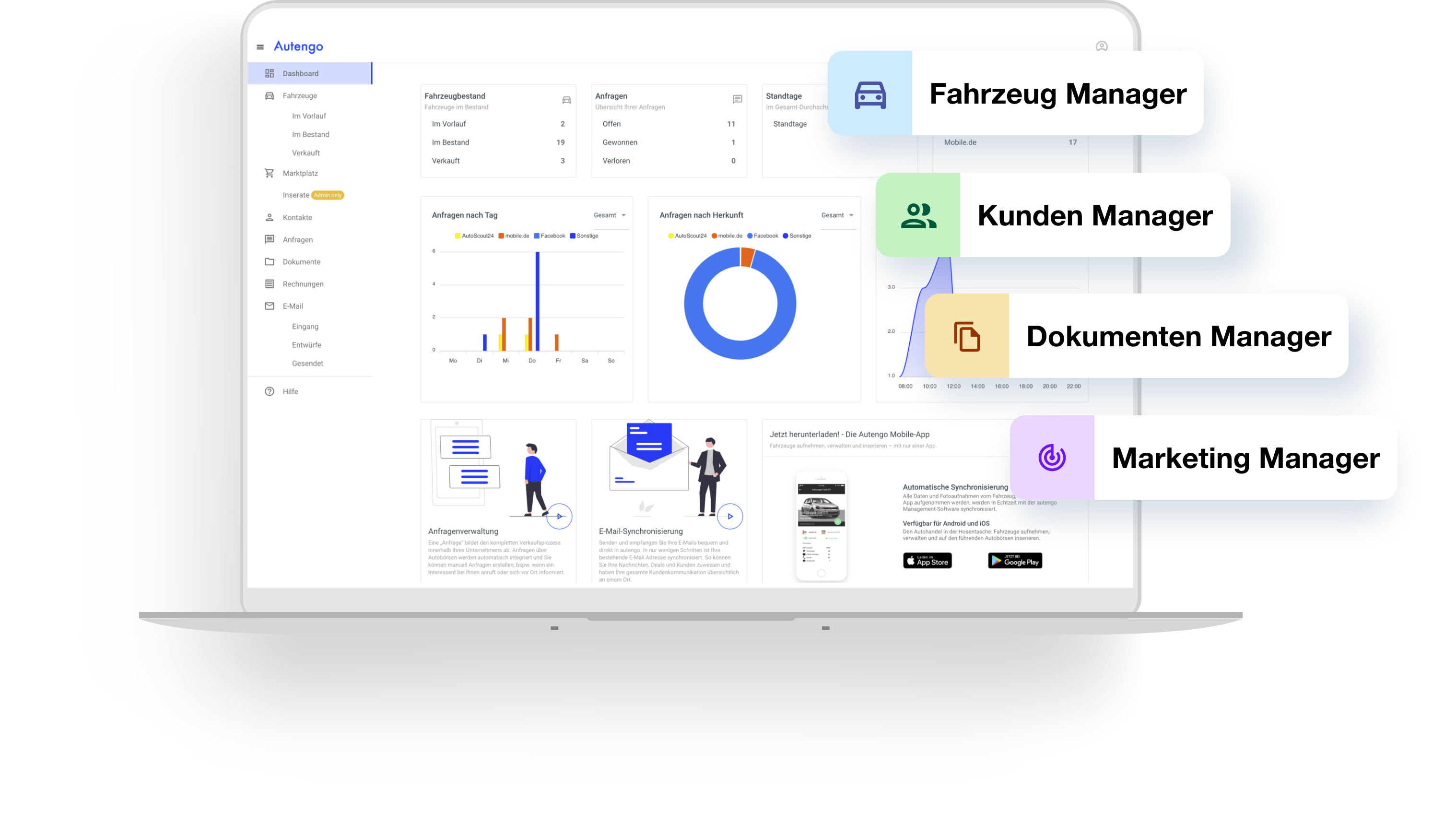 Für mehr Effizienz und eine moderne Arbeitsweise im Autohandel haben wir unsere Produkte Ihren Bedürfnissen angepasst. All unsere Produkte sind sowohl einzeln, als auch im Paket nutzbar.